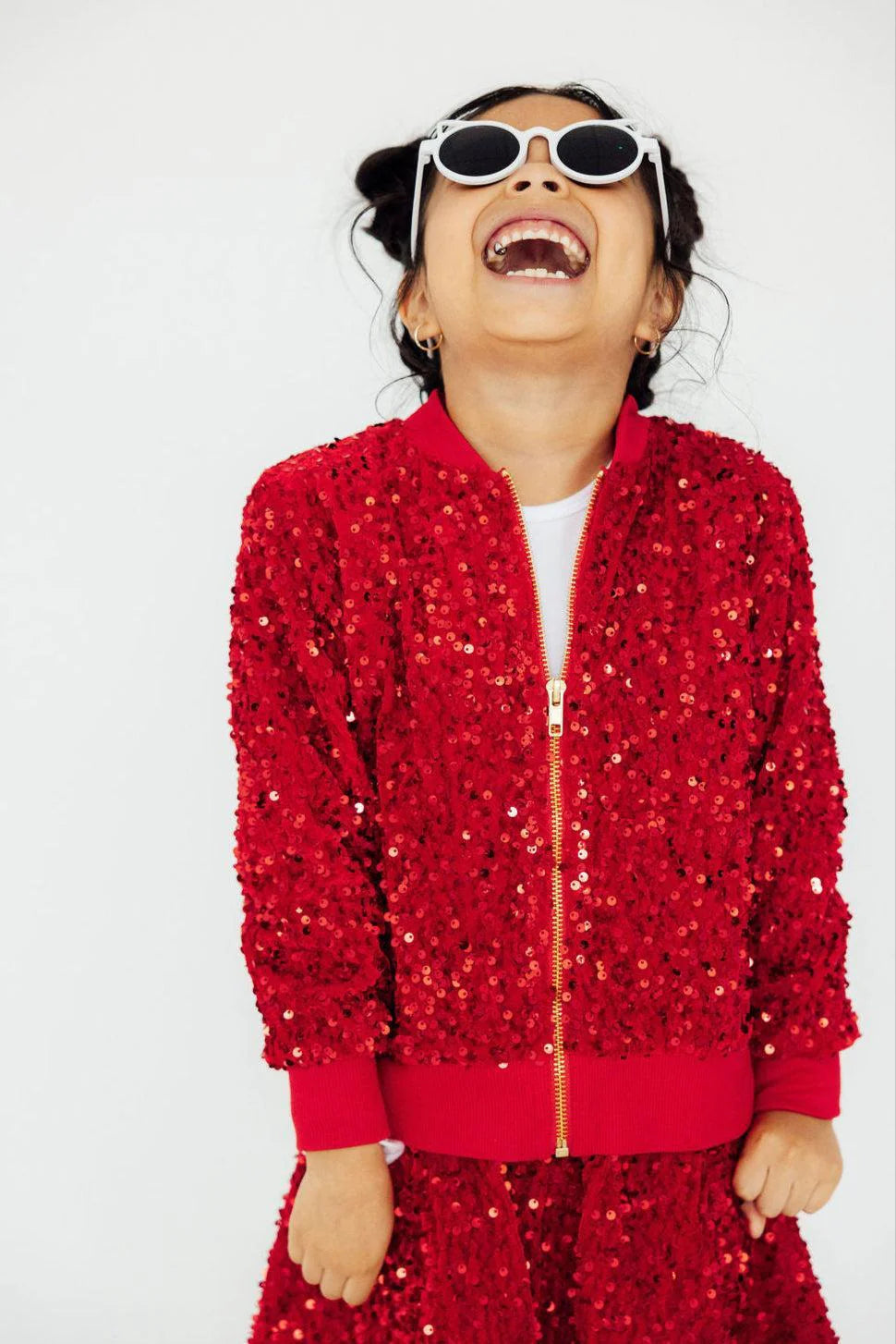 A dazzling piece that will make your little one shine like a star! Perfect for both special occasions and everyday wear. Whether she is twirling, posing for photos, or simply embracing her inner fashionista, this sequin jacket is sure to make a statement. Let her sparkle and shine with confidence and style!